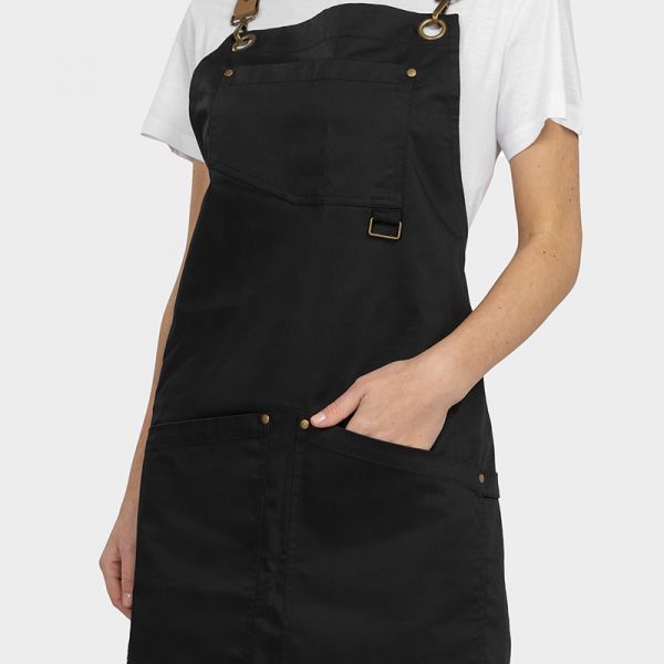 - Confecționat din 65% poliester și 35% bumbac, cu densitatea materialului de 240 g/m². Țesătura este rezistentă, confortabilă și ușor de întreținut. Șorțul este o alegere ideală pentru utilizare profesională în bucătării, zone de servire, ateliere, saloane, precum și pentru uz personal acasă.