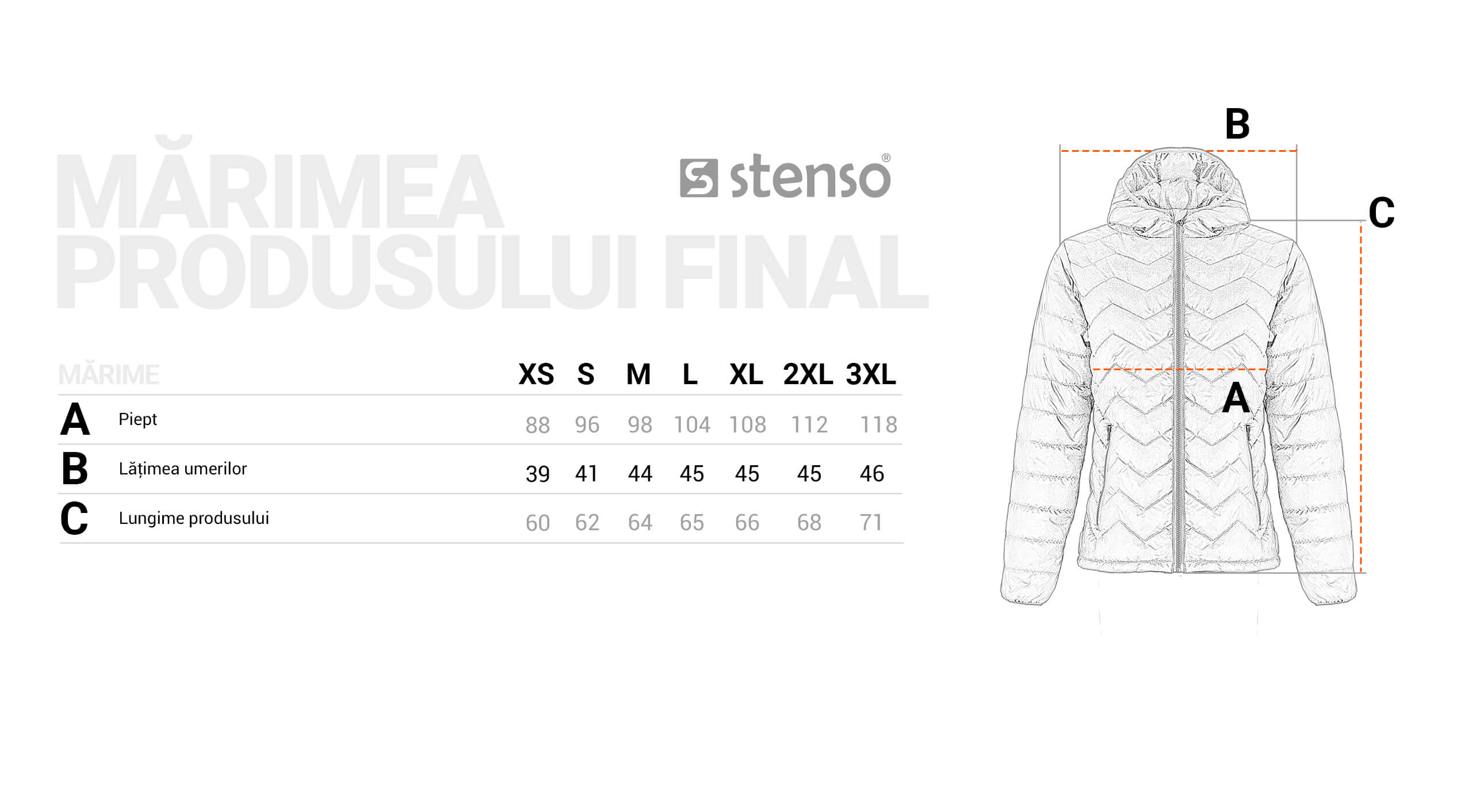 - Jacheta este cu dimensiuni reduse. Pentru informații mai detaliate, consultați tabelul cu mărimi.