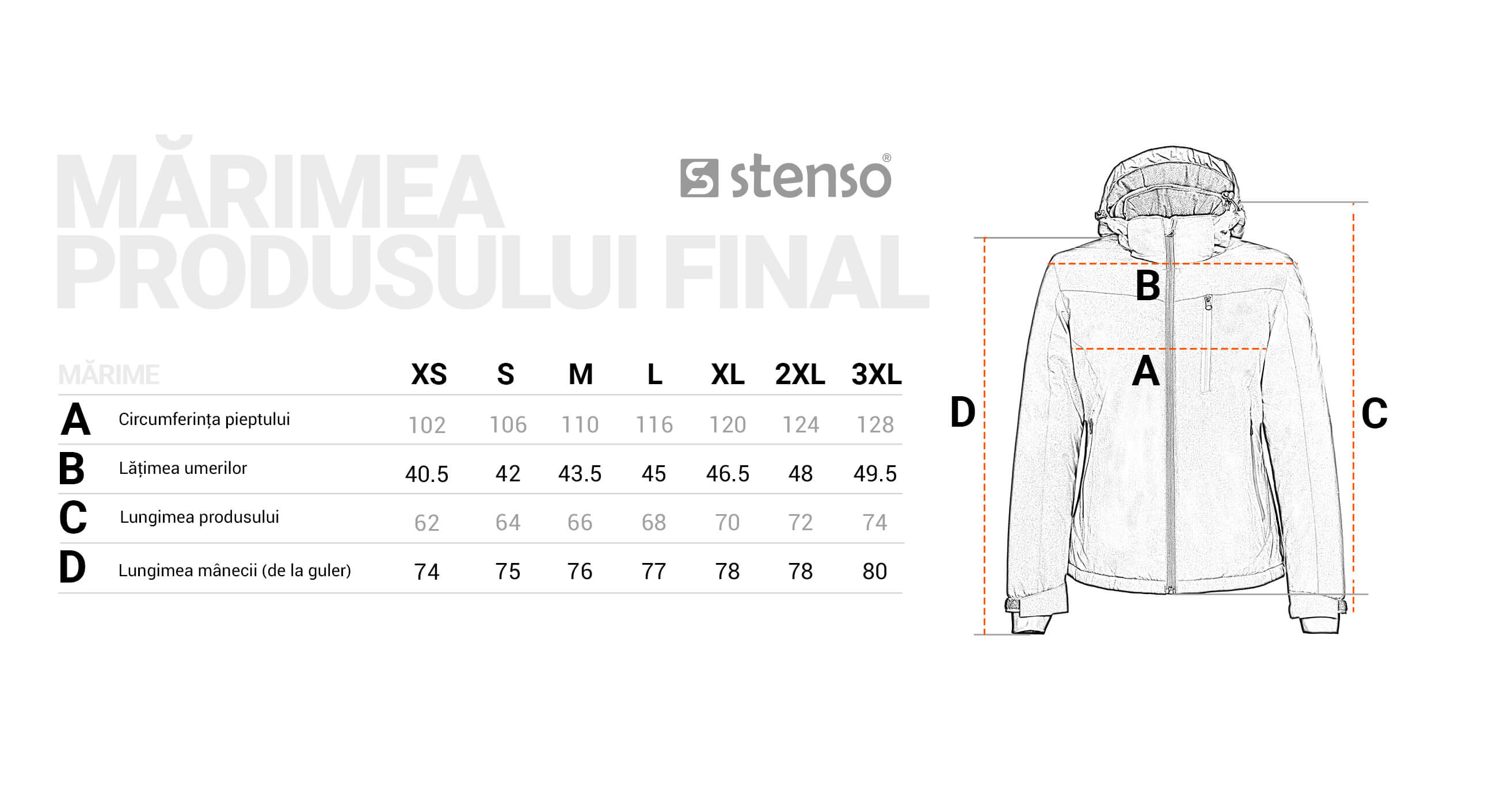 - Un buzunar la piept cu fermoar; • închiderea manșetelor cu velcro