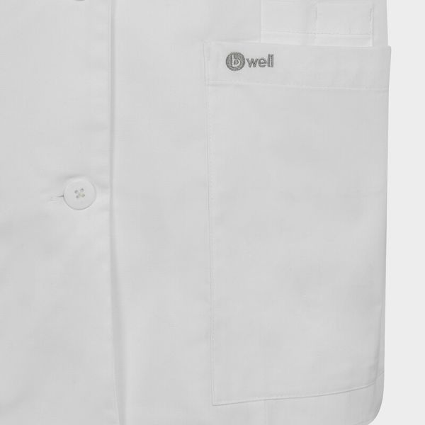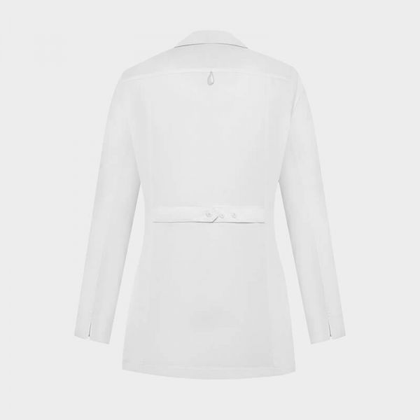 Halat medical pentru femei, realizat dintr-o combinație de bumbac, elastan și spandex, cu un design elegant și cambrat, care evidențiază silueta, oferind în același timp confort și libertate de mișcare. Halatul dispune de buzunare practice pentru depozitarea instrumentelor și o buclă pentru ecuson, pentru un plus de funcționalitate. Alegerea perfectă pentru specialiștii din domeniul medical care caută stil și eleganță pe tot parcursul zilei de lucru.