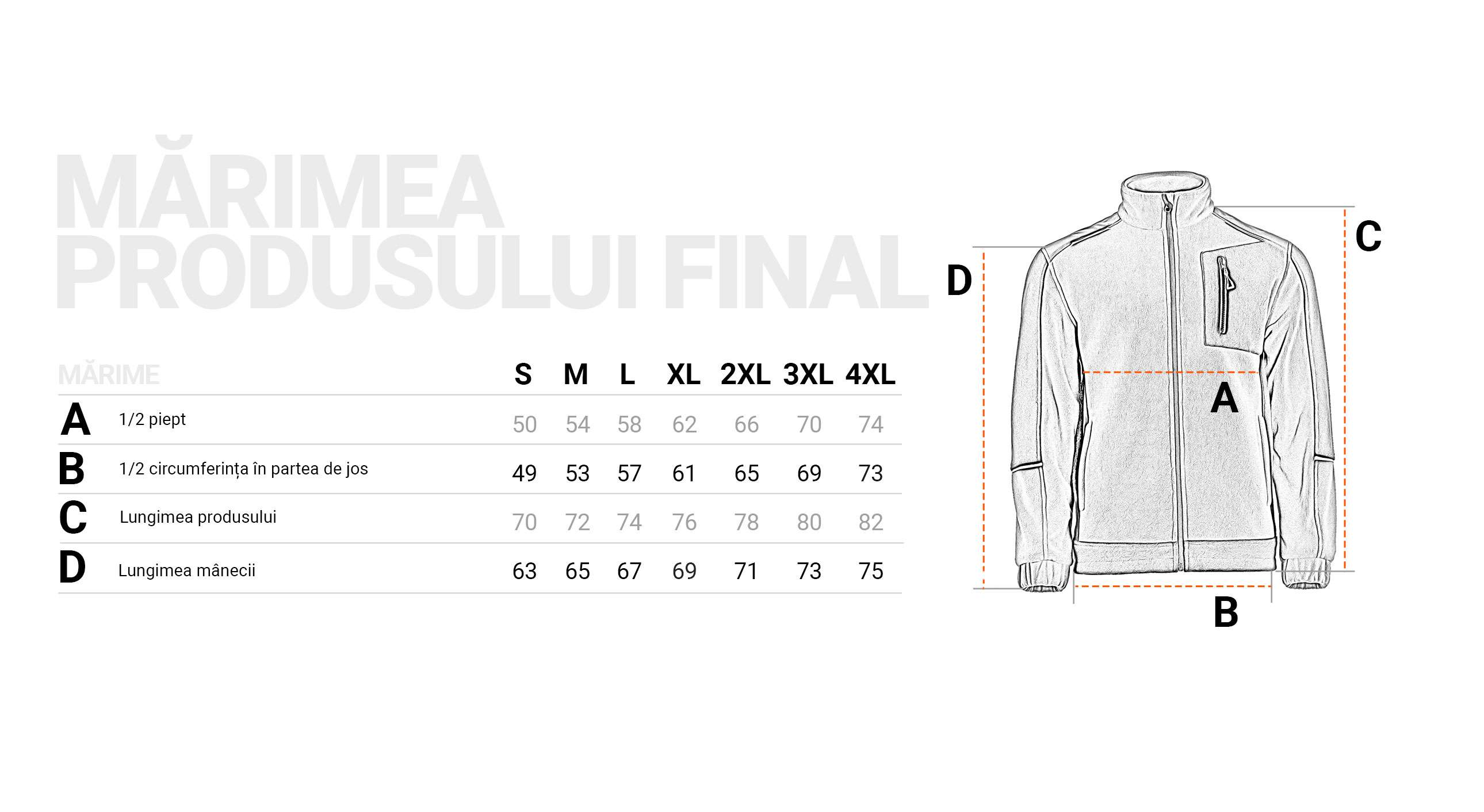 Material: polar cu acoperire anti-pilling, 350 g/m²