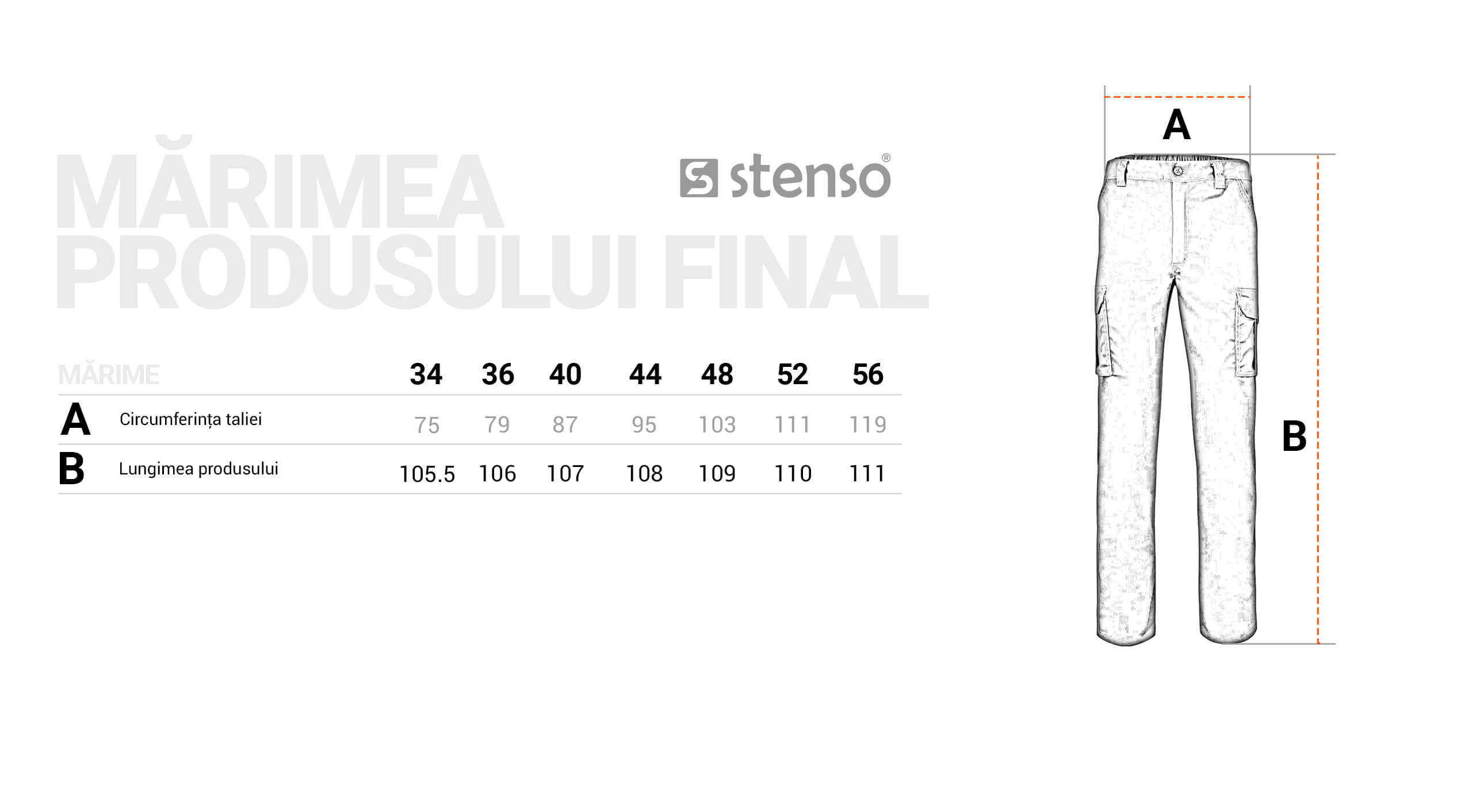 Material: stretch 46% bumbac/38% eme/16% poliester, 240 g/m²