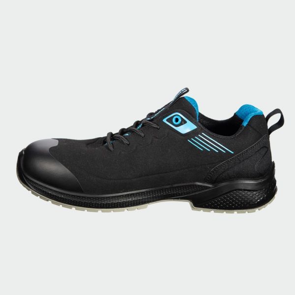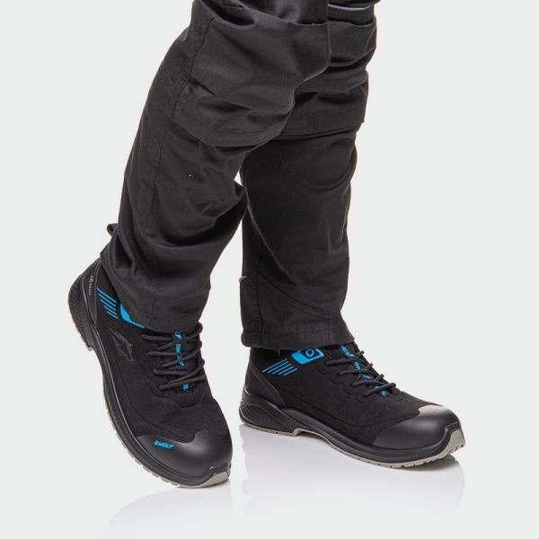 NOIR S3S de la marca BWOLF sunt încălțăminte de lucru unisex ESD, extrem de confortabile, ușoare datorită tehnologiei X-light, care oferă confort de durată pe parcursul zilei de muncă. NOIR S3S reprezintă cea mai bună alegere pentru cei care cer perfecțiune de la încălțămintea lor de protecție. Fabricate din microfibră rezistentă, întărită cu protectoare TPU în zona degetelor și călcâiului, cu bombeu compozit ușor și durabil și inserție din kevlar pentru protecție sigură împotriva perforării. Branțul este interschimbabil, respirabil și anatomic, realizat din spumă poliuretanică de înaltă calitate, care amortizează mersul și absoarbe energia cu tehnologia Ergo Plus. Pantofii sunt proiectați pentru confort și durabilitate, fiind potriviți pentru diverse medii de lucru.