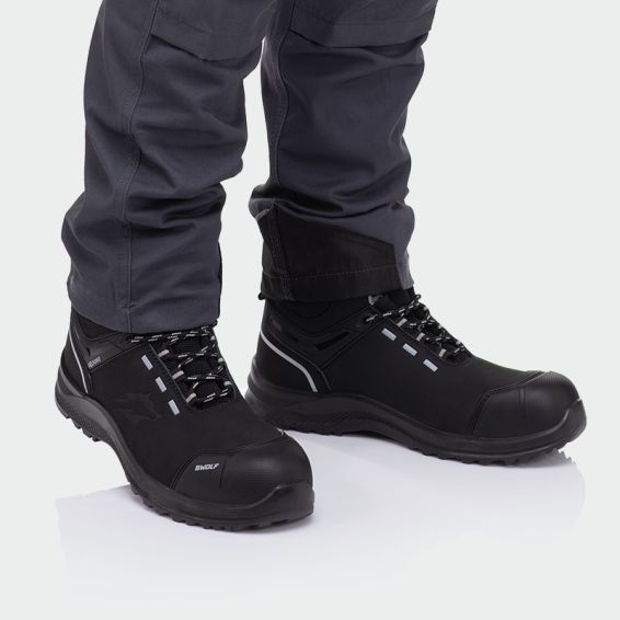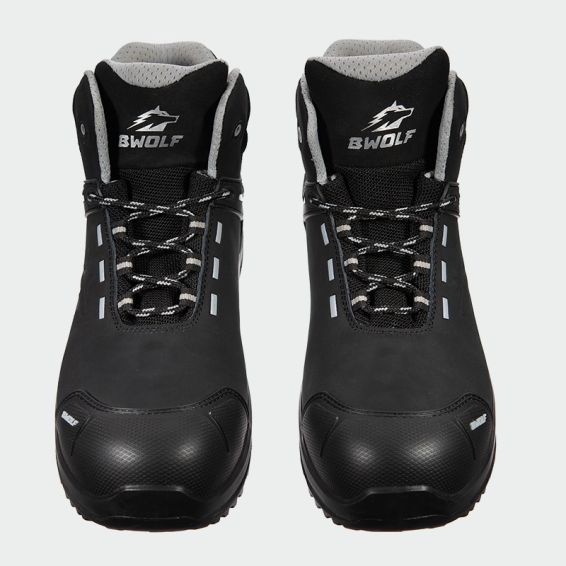 Pantofii de lucru DEFENDER HI S3 de la marca B-Wolf sunt fabricați din nubuc hidrofug în partea superioară, ceea ce le conferă un design inovator. Sunt echipați cu bombeu compozit în partea frontală și inserție din kevlar în talpă.