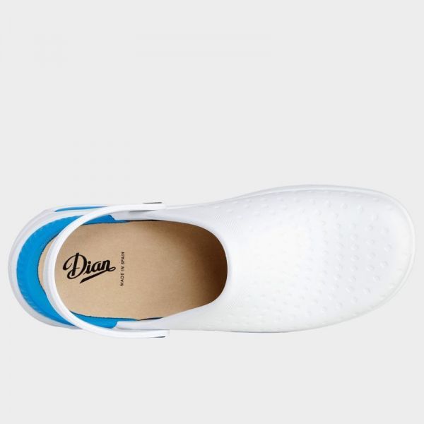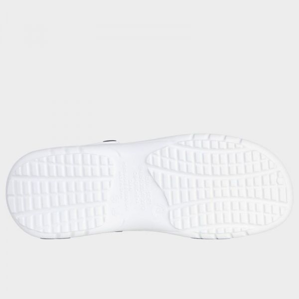 Saboți EVA ultraușori, antibacterieni, fără latex, anatomici și antiderapanți. Lavabili până la 40°C. Curea din spate pliabilă, orificii laterale pentru a facilita transpirația, curățarea și pentru a evita pătrunderea directă a lichidului în saboți. Talpă detașabilă din PU cu proprietăți excelente de recuperare a energiei la mers căptușită cu material D’DRY®.