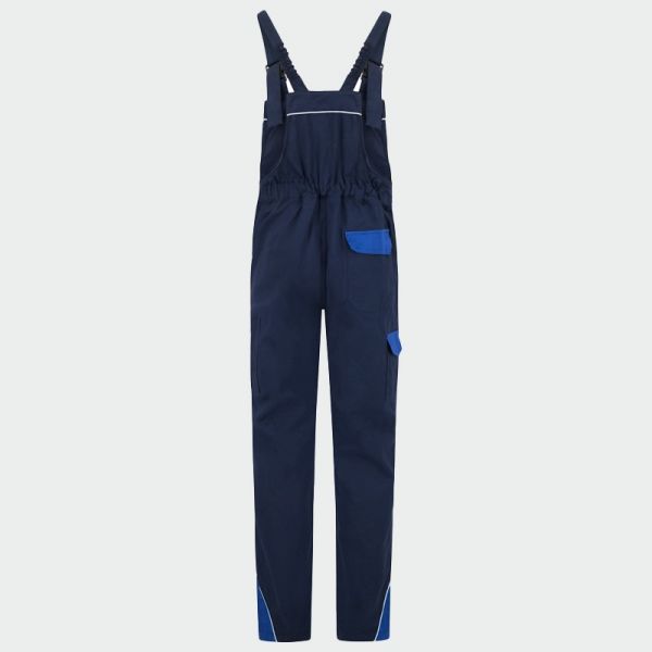 Salopeta de lucru ARES în două culori este confecționată din țesătură 100% bumbac respirabil. Tehnologia specială Re-flect este integrată în fabricație pentru o vizibilitate mai bună și pentru lucrul în condiții de întuneric.