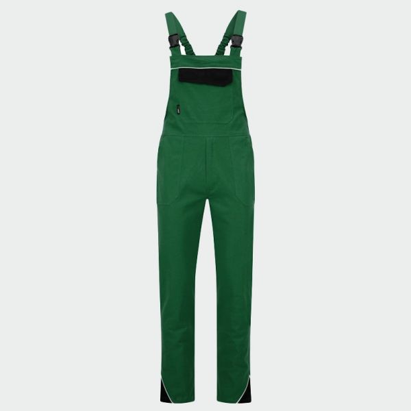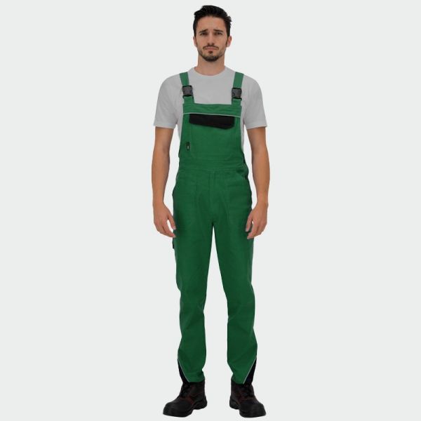 Salopeta de lucru ARES în două culori este confecționată din țesătură 100% bumbac respirabil. Tehnologia specială Re-flect este integrată în fabricație pentru o vizibilitate mai bună și pentru lucrul în condiții de întuneric.