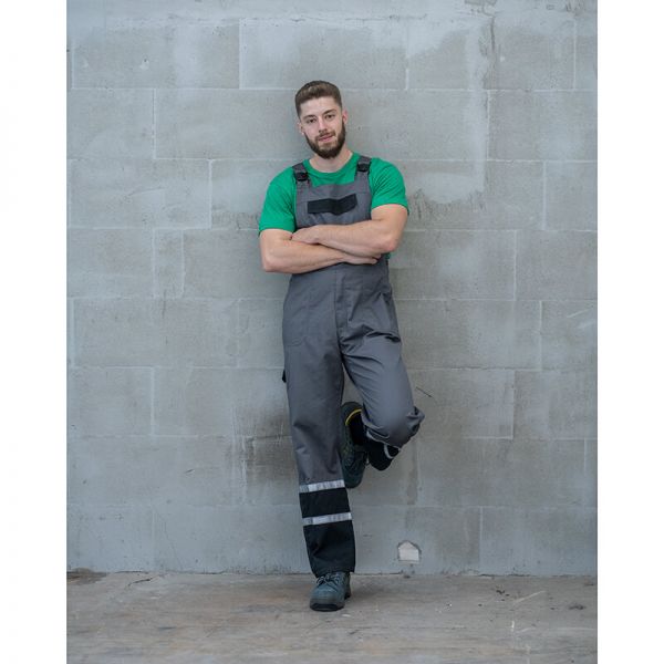Salopeta de lucru CHAR este un model de îmbrăcăminte de lucru potrivit pentru angajații din infrastructura rutieră, pentru lucrul în ture de seară și pentru lucrul în grădină și pe câmp. Benzile reflectorizante late și tehnologia Re-flect o fac o îmbrăcăminte de lucru cu vizibilitate excelentă în zilele rele și ploioase. Salopeta de lucru CHAR se combină perfect cu jacheta de lucru CHAR. Este disponibilă în două culori - albastru și gri.