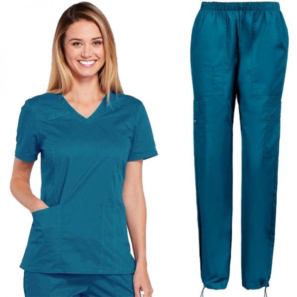 Set damă medical pentru Cherokee Core Stretch WWE4710/WWE4005 Albastru caraibian