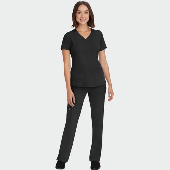 Pantalonul elegant de lucru pentru femei HH REBECCA de la marca Healing Hands are o croială confortabilă și modernă, cu un design drept al cracului și o talie elastică cu șnur pentru o ajustare mai bună.