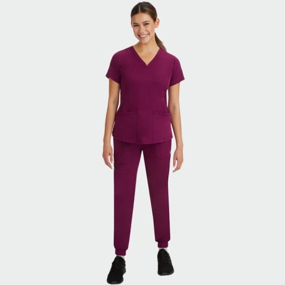 Pantalonul elegant de lucru pentru femei HH REBECCA de la marca Healing Hands are o croială confortabilă și modernă, cu un design drept al cracului și o talie elastică cu șnur pentru o ajustare mai bună.
