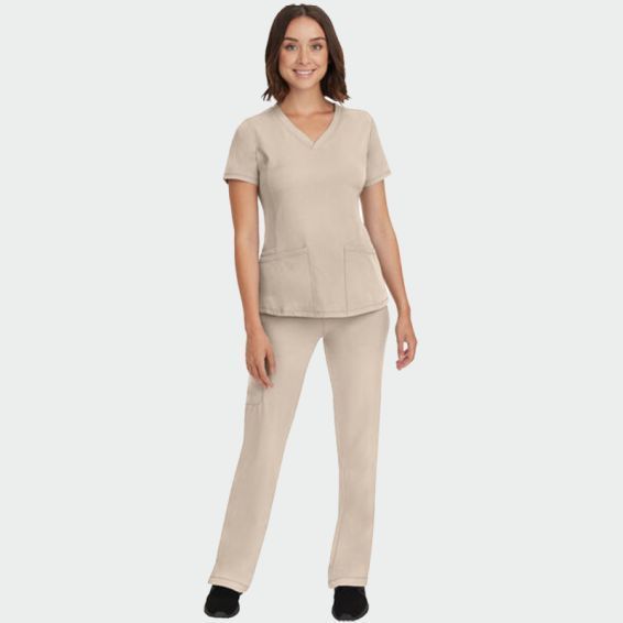 Pantalonul elegant de lucru pentru femei HH REBECCA de la marca Healing Hands are o croială confortabilă și modernă, cu un design drept al cracului și o talie elastică cu șnur pentru o ajustare mai bună.