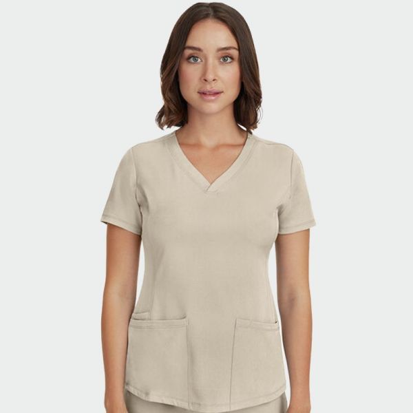 Tunica medicală pentru femei HH MONICA de la marca Healing Hands este confecționată din 91% poliester și 9% elastan, cu o densitate a materialului de 175 g/m².