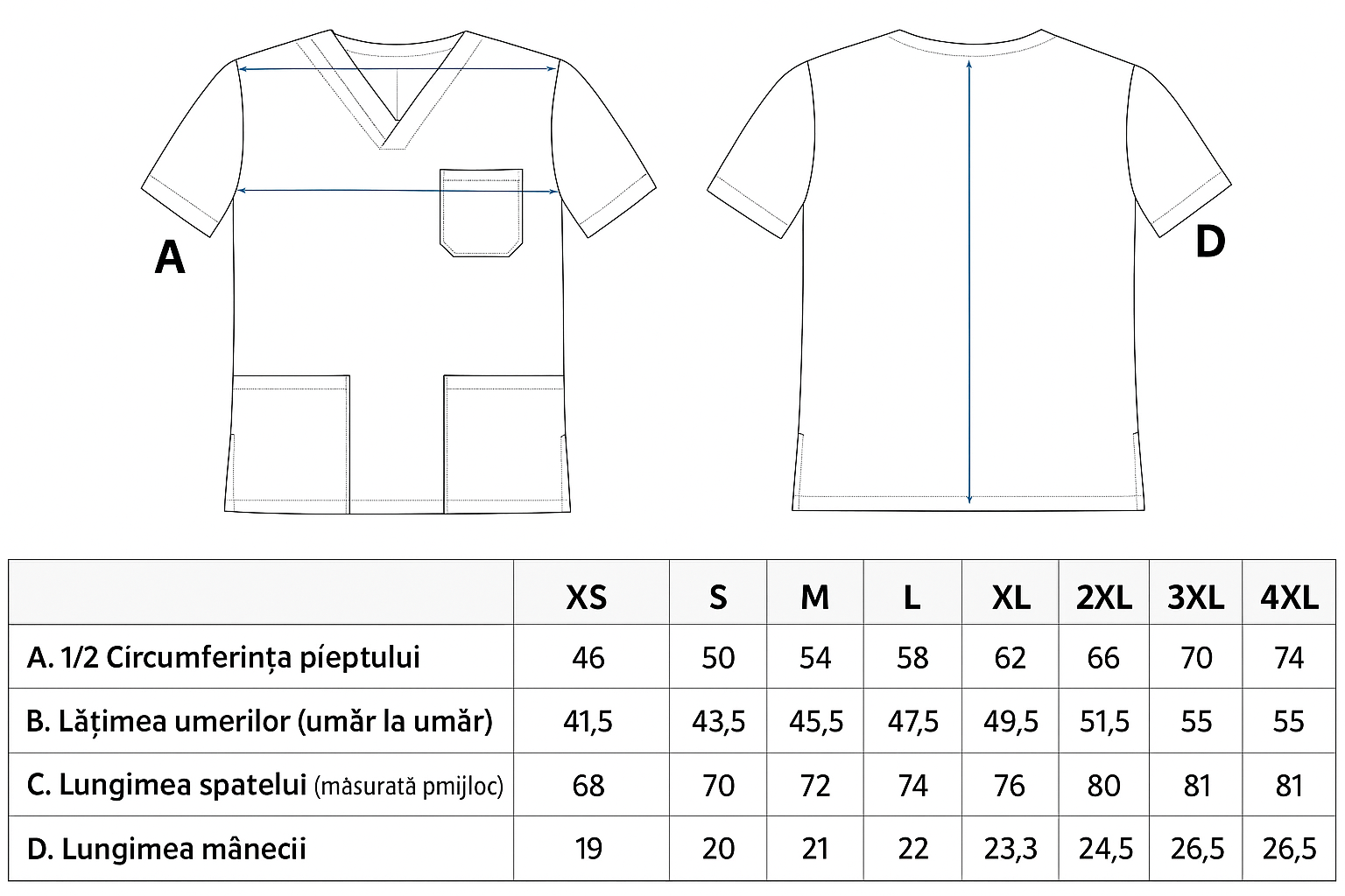 - Două buzunare confortabile, cel drept cu compartiment pentru pix