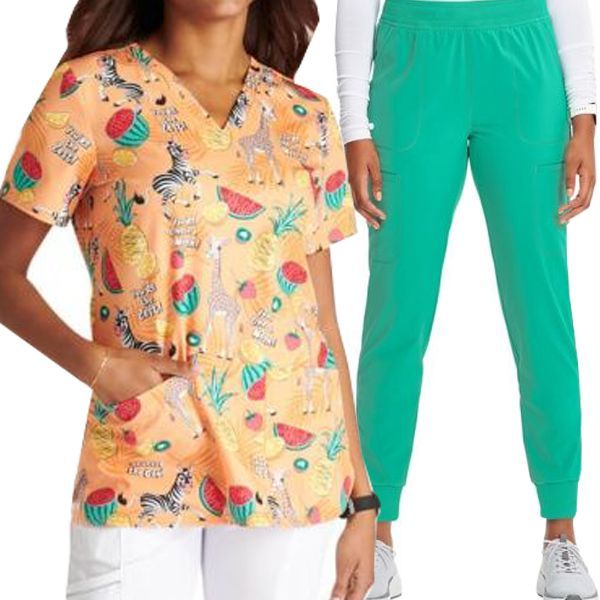 Set medical pentru femei Cherokee „Girafă” cu pantaloni verzi