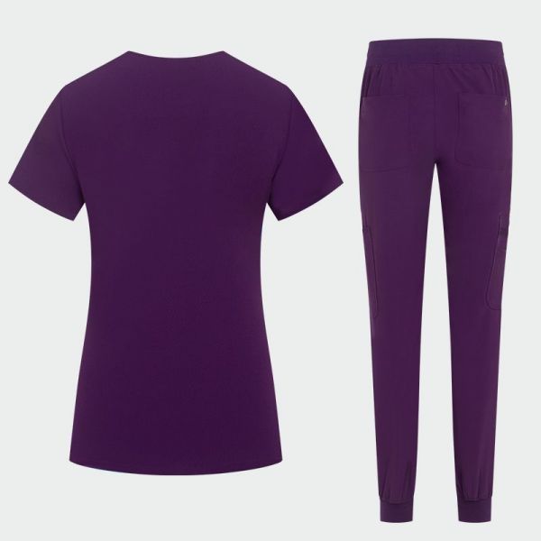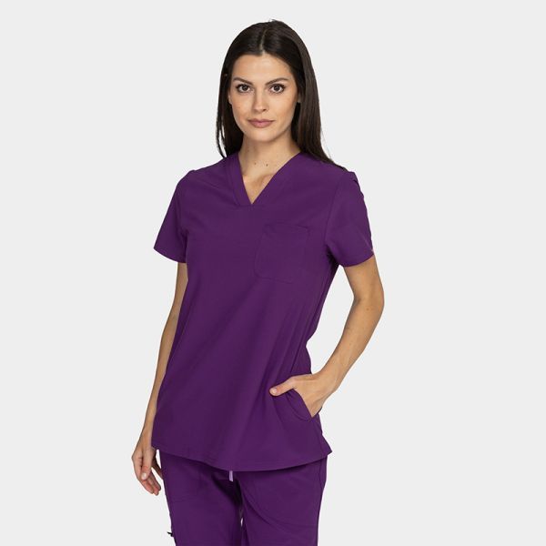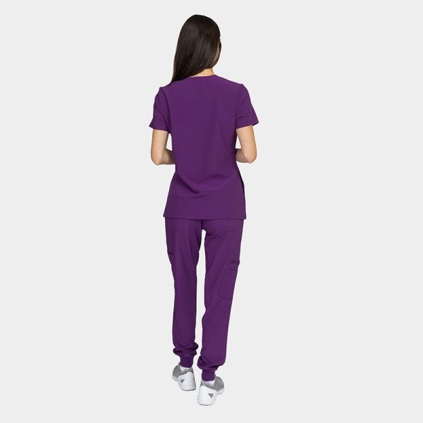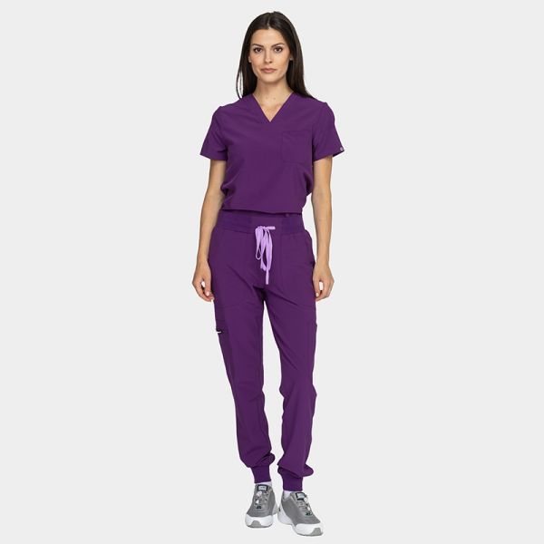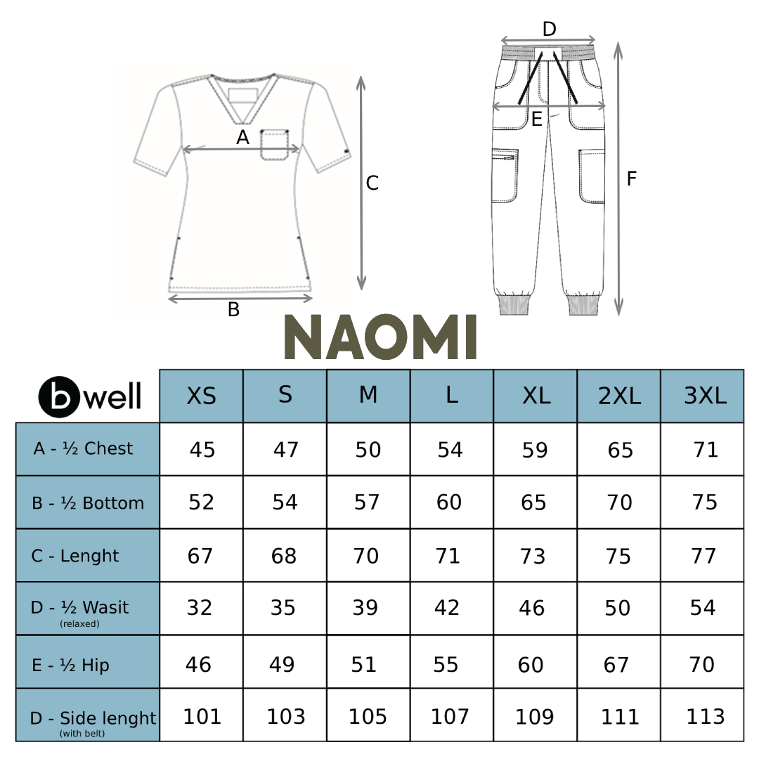 NAOMI este un set medical de damă, stilat și practic – tunică și pantalon tip „jogger”, realizat dintr-un material de înaltă calitate, care asigură confort și libertate de mișcare.