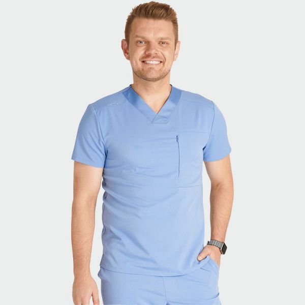 • CHEROKEE CK718A este o tunică medicală bărbătească tip scrub top, cu un design clasic și funcțional, creată pentru confort în timpul turelor lungi de lucru. Modelul dispune de buzunare practice și este realizat dintr-un material respirabil de înaltă calitate, potrivit pentru utilizare zilnică intensă.