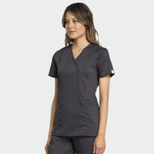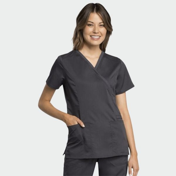 Tunica medicală REVOLUTION WWE775AB este o tunică elegantă pentru damă, marca CHEROKEE, cu mânecă scurtă și decolteu în V. Este realizată din 78% poliester, 20% viscoză și 2% elastan, cu densitate de 170 g/m².