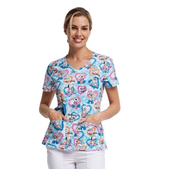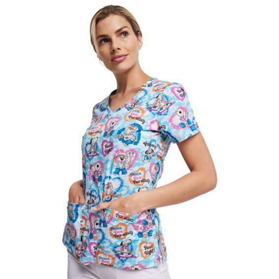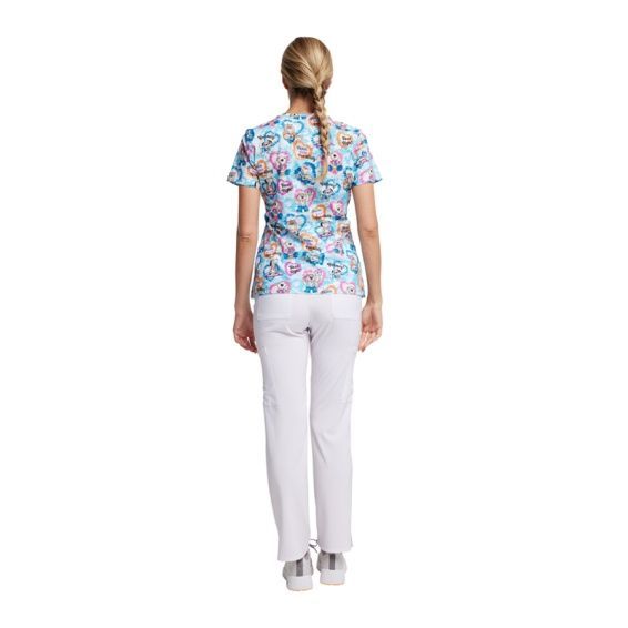 Tunica medicală de lucru EDS DK721 este o tunică elegantă pentru dame, marca DICKIES, cu croială cambrată, decolteu în V și imprimeu colorat modern. Model clasic, tunica este confecționată din 97% poliester și 3% elastan, cu densitate de 175 g/m².