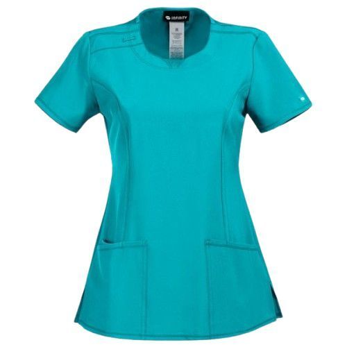 Tunică medicală pentru femei, cu decolteu rotund și tratament antimicrobian, care oferă protecție suplimentară și prospețime pe tot parcursul zilei. Parte din colecția Cherokee Infinity, ce combină designul modern cu funcționalitatea.