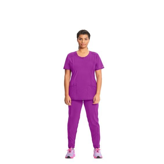 Tunicile medicale de lucru INFINITY CKE 2624A sunt elegante, destinate doamnelor, marca CHEROKEE, cu croială cambrată și aspect modern. Tunica medicală este confecționată din 95% poliester și 5% elastan, cu densitate de 175 g/m², ceea ce oferă multă libertate de mișcare și confort pe tot parcursul zilei.