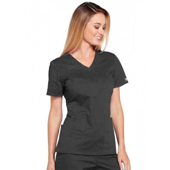 Tunica medicală de lucru CORE STRETCH WWE4710 este o tunică elegantă pentru dame, marca CHEROKEE, cu croială cambrată și un aspect modern. Este confecționată din 55% bumbac, 42% poliester și 3% elastan, cu densitatea țesăturii de 170 g/m².
